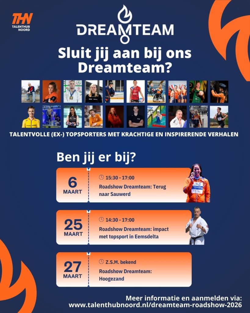 Via Talenthub Noord organiseren we binnenkort een Roadshow over het Dreamteam-programma in diverse gemeenten in Groningen.