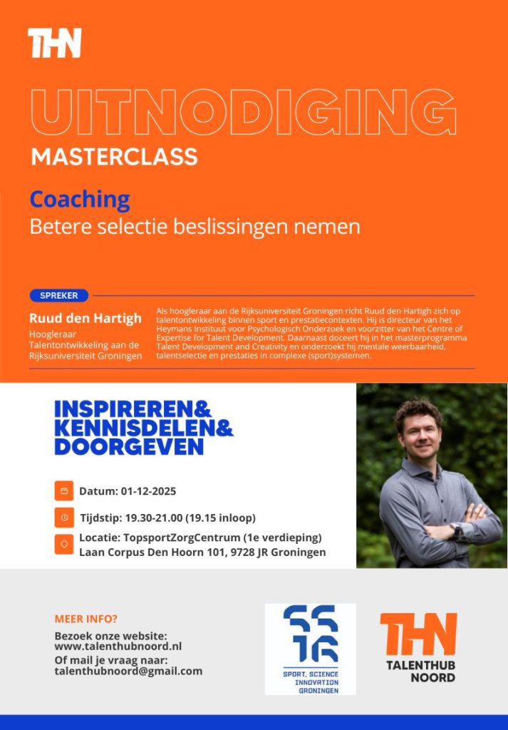 Tijdens deze masterclass deelt Ruud den Hartigh (Rijksuniversiteit Groningen) zijn inzichten over talentontwikkeling en prestaties in sport- en prestatiecontexten. Hoe herken je talent en maak je betere selectie beslissingen?
