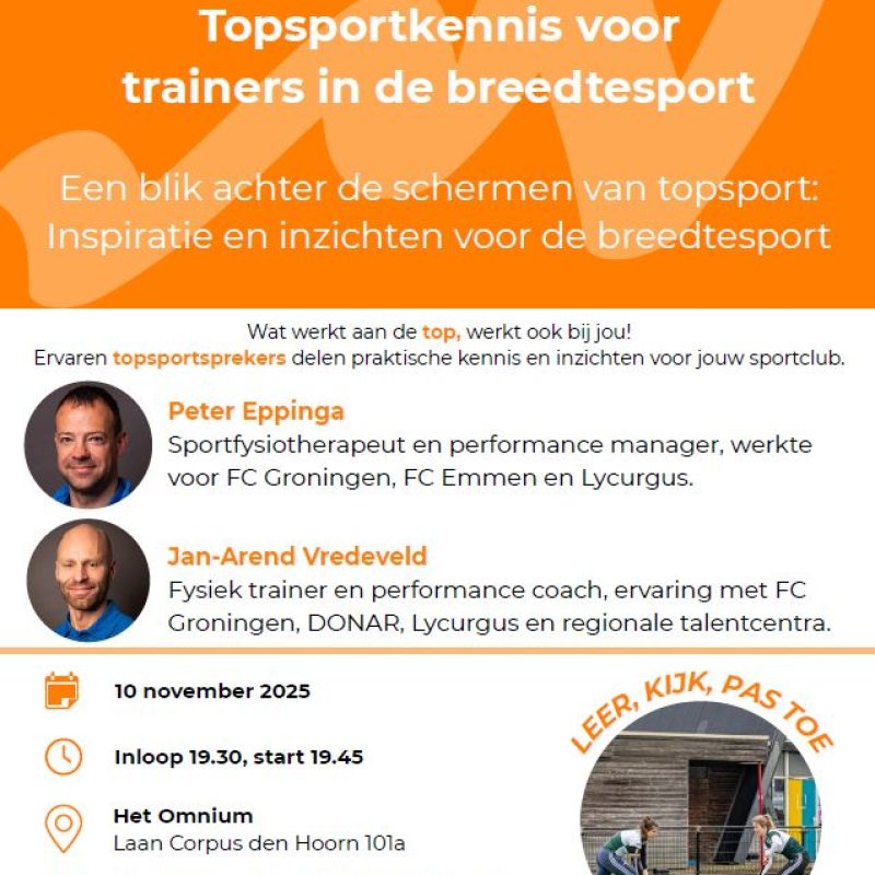 Verdiepende groepen rondom thema’s zoals talentontwikkeling, prestatiegedrag, sport science, strength & conditioning, (para)medisch en herstel. Hier ga je samen met vakgenoten de inhoudelijke diepte in.